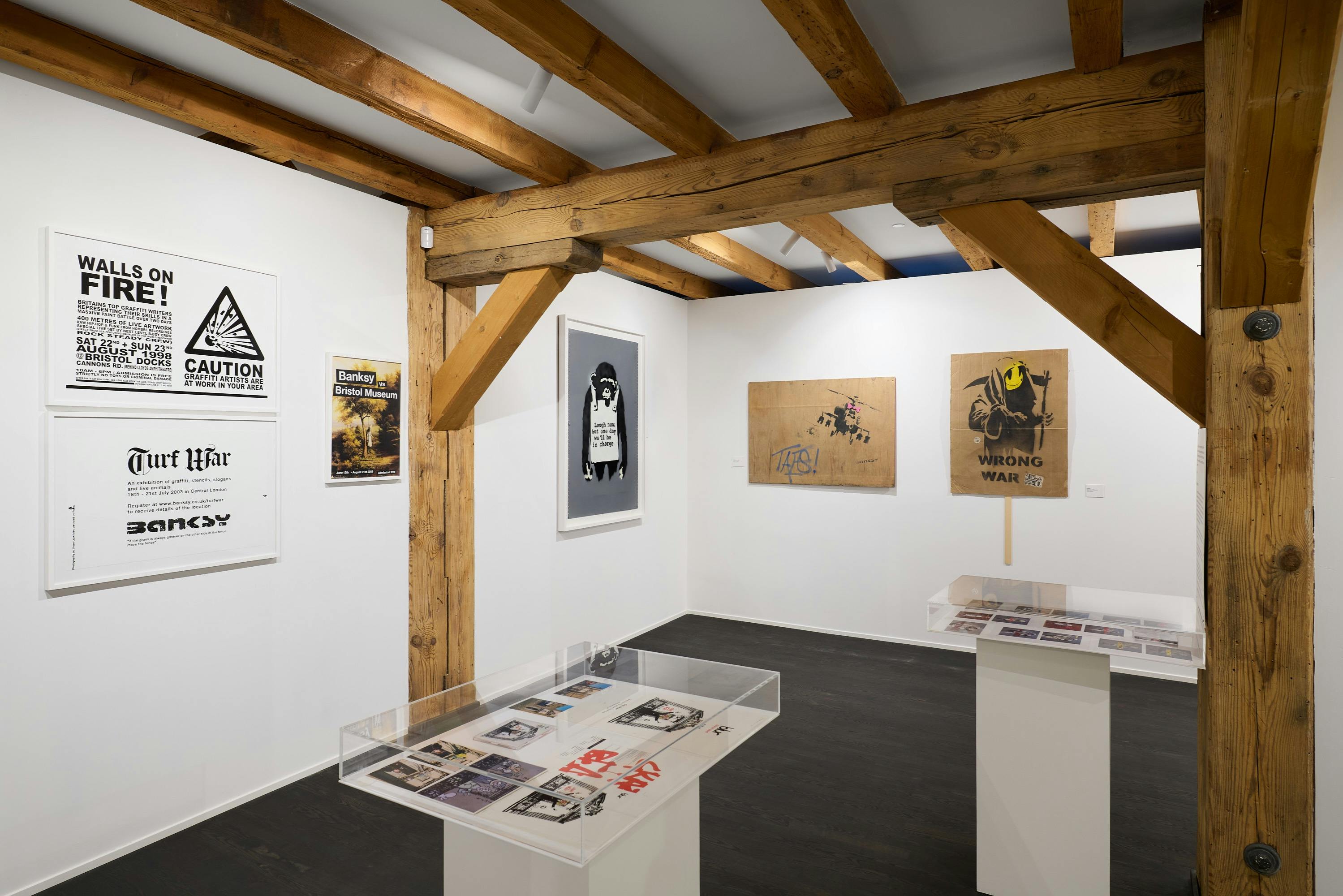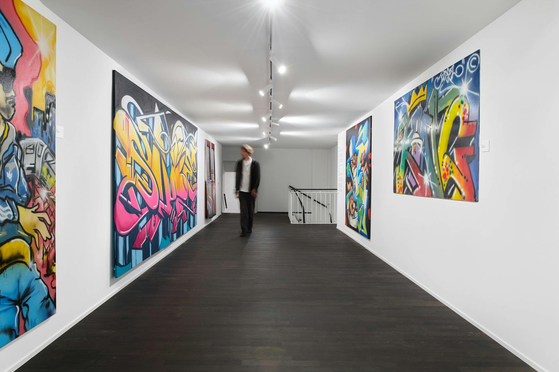 See works by artists who influenced Banksy, such as Dondi White, Futura 2000, and Jean-Michel Basquiat from 1970s and 80s New York, as well as Robert Del Naja, a graffiti legend from Bristol and co-founder of Massive Attack.