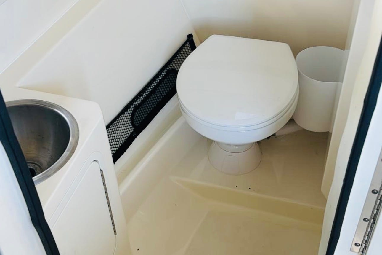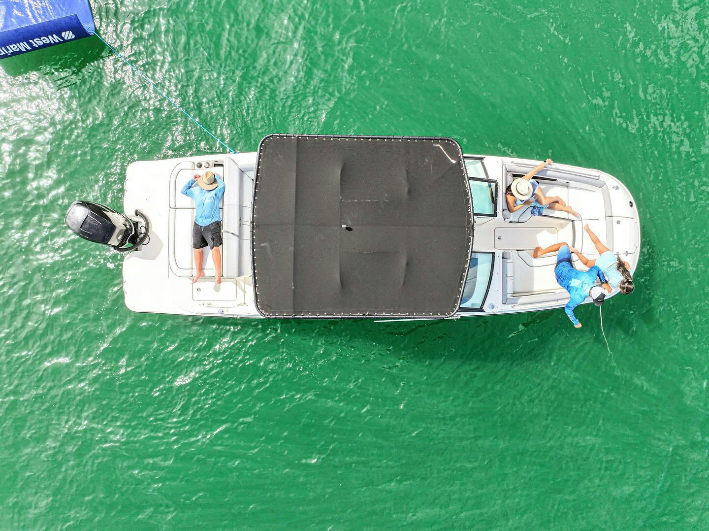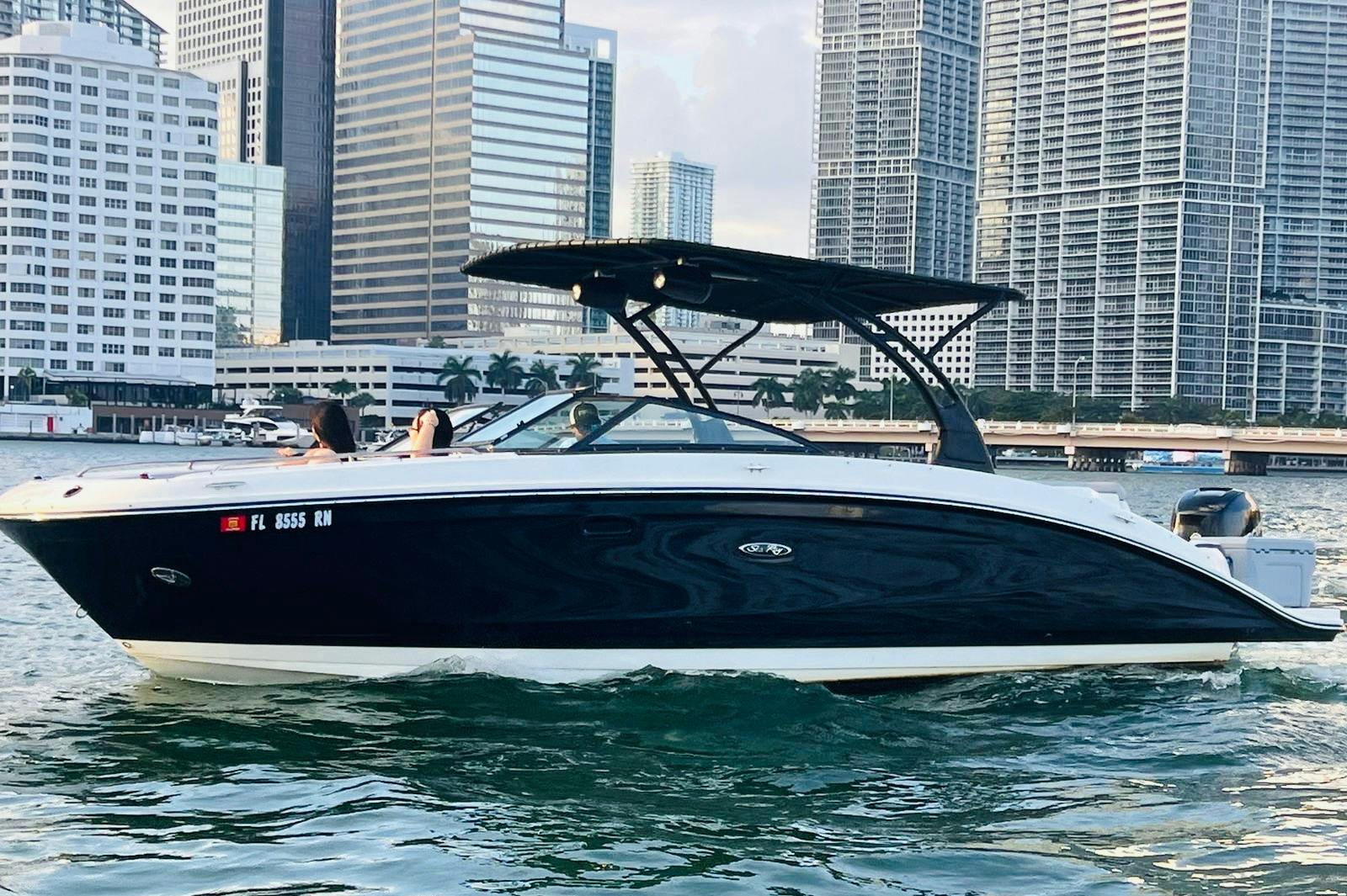 Cruise along the clear waters of Miami aboard the Sea Ray boat and enjoy a scenic boat ride. Included for your convenience is a cooler with ice and bottled water. Feel free to bring your favorite food and drinks. Enjoy many other facilities onboard such as a large floating mat for your enjoyment, along with an upgraded audio system, deck shower, swim ladder, and bathroom. Relax while listening to music via bluetooth speakers available on deck, as well as life jackets and a first aid kit for safety.