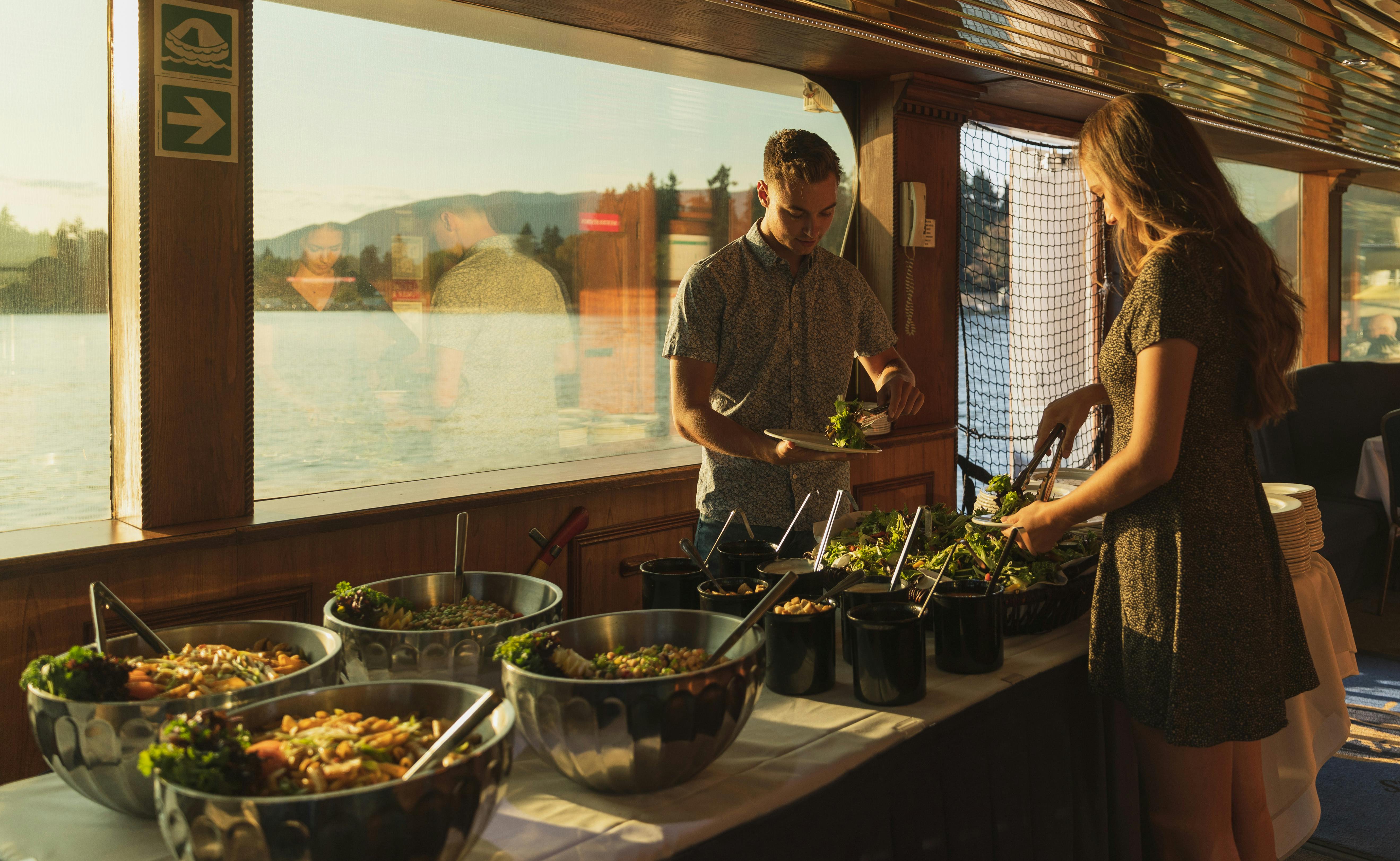 Lounge on open-air decks. Breathe in the salt air. Sip something cold. And take your time over a fresh buffet lunch served on board. It’s slow travel – scenic and soulful. And only happens once a month, on the third Sunday.