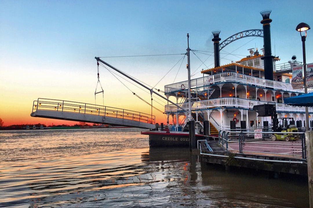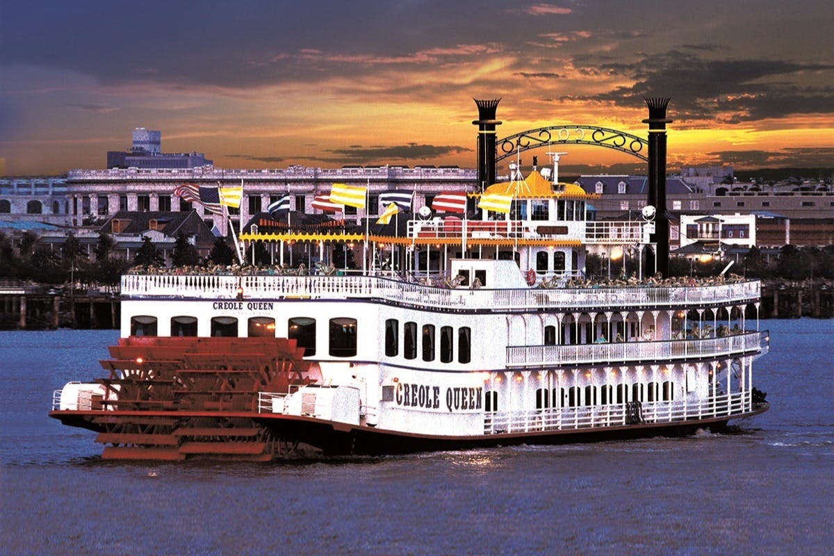 Take a riverboat cruise on the Paddlewheeler Creole Queen. Hear traditional New Orleans music and have a Creole buffet (optional) in the dining room. After dinner (optional) and dancing, have a classic New Orleans cocktail on the promenade deck. Feel the cool Mississippi River air as the city skyline passes by.