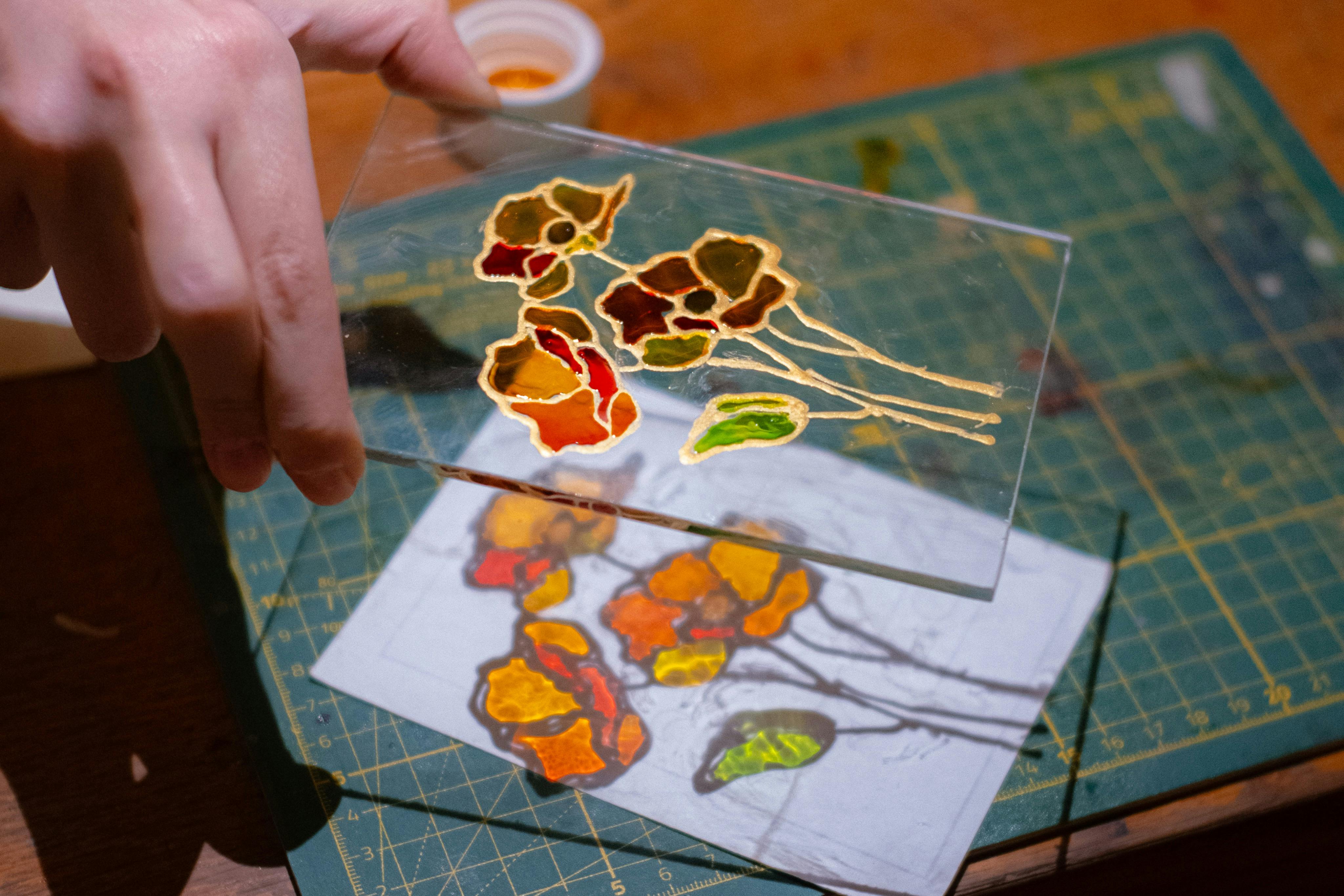 Engage in the process of creating stained glass paintings, a tradition where light and design combine to produce art.