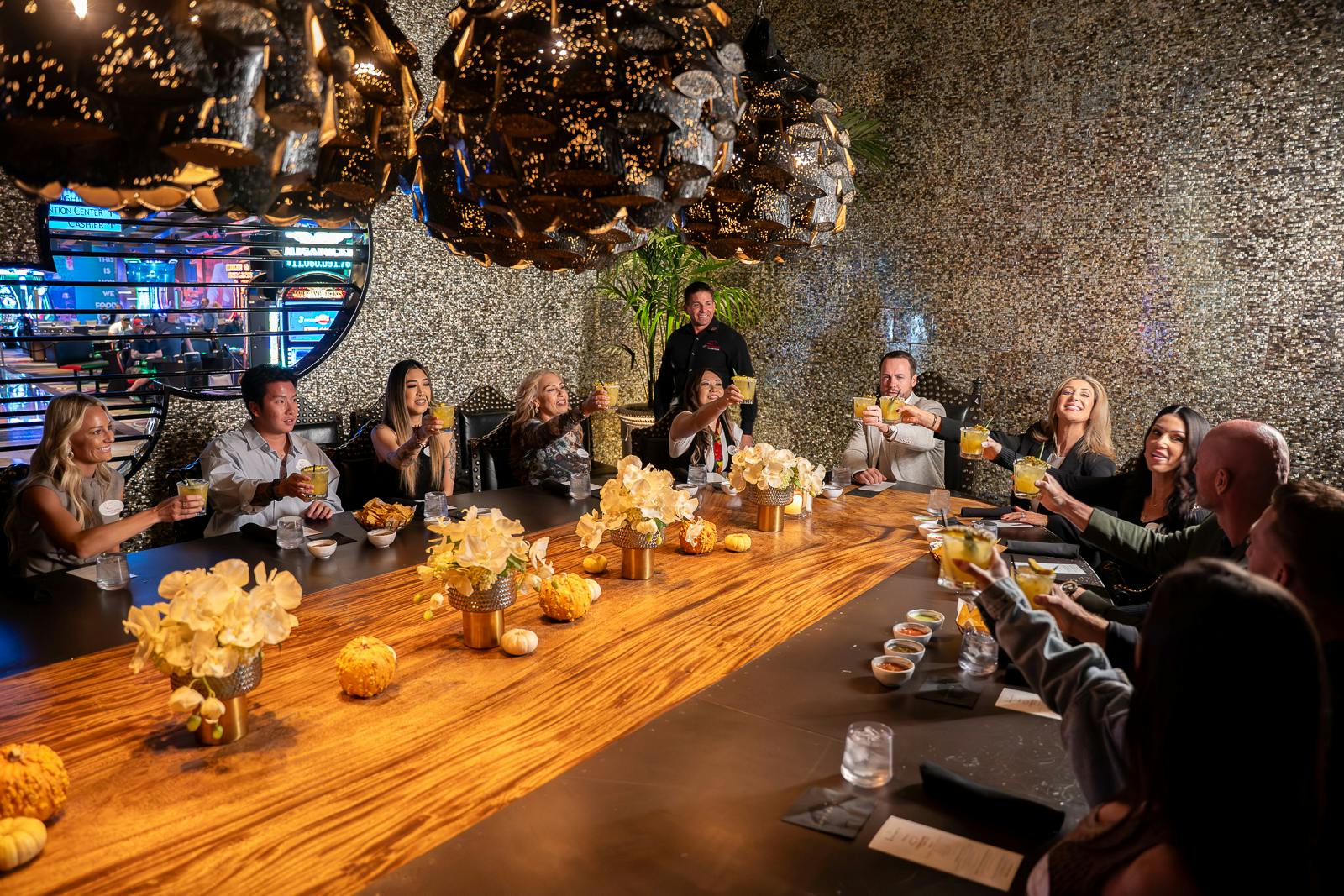 A professional guide leads the tour and shares information about the *Chandelier Bar,* artworks, and other points of interest along the way. After the dining portion, you’ll board the helicopter for the Strip flight.