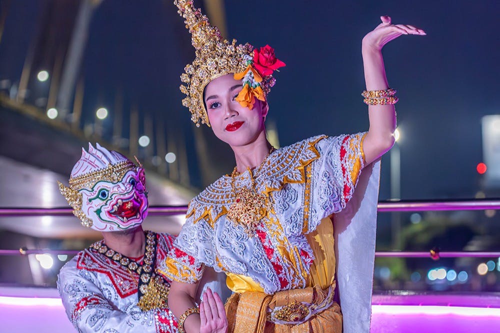 Board the Chao Phraya River night cruise and spend two hours cruising from 20:00 to 22:00. Enjoy a buffet of Thai and international cuisine while you see the sights along the Chao Phraya River. Dine with a view and taste the variety of dishes. Watch live Thai classical dance shows and listen to live music.