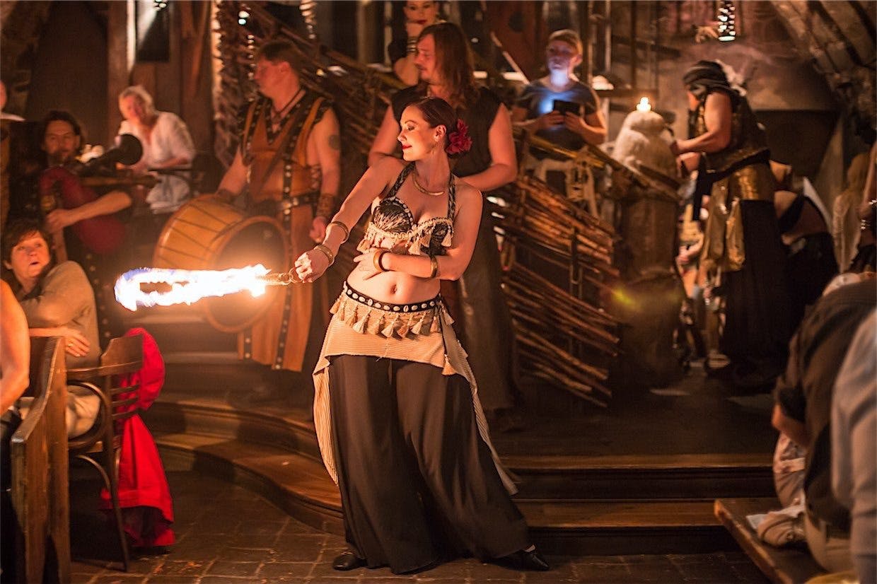 Spend a Christmas evening at a historical tavern in Prague's Old Town. Enter gothic cellars and see centuries-old settings and objects. Watch jugglers, belly dancers with swords and snakes, musicians, and sword fights. Dine on a 3-course meal while entertainment happens around you. Hold your drink tight – a musketeer might challenge you! A fortune-teller might even share insights about your future.