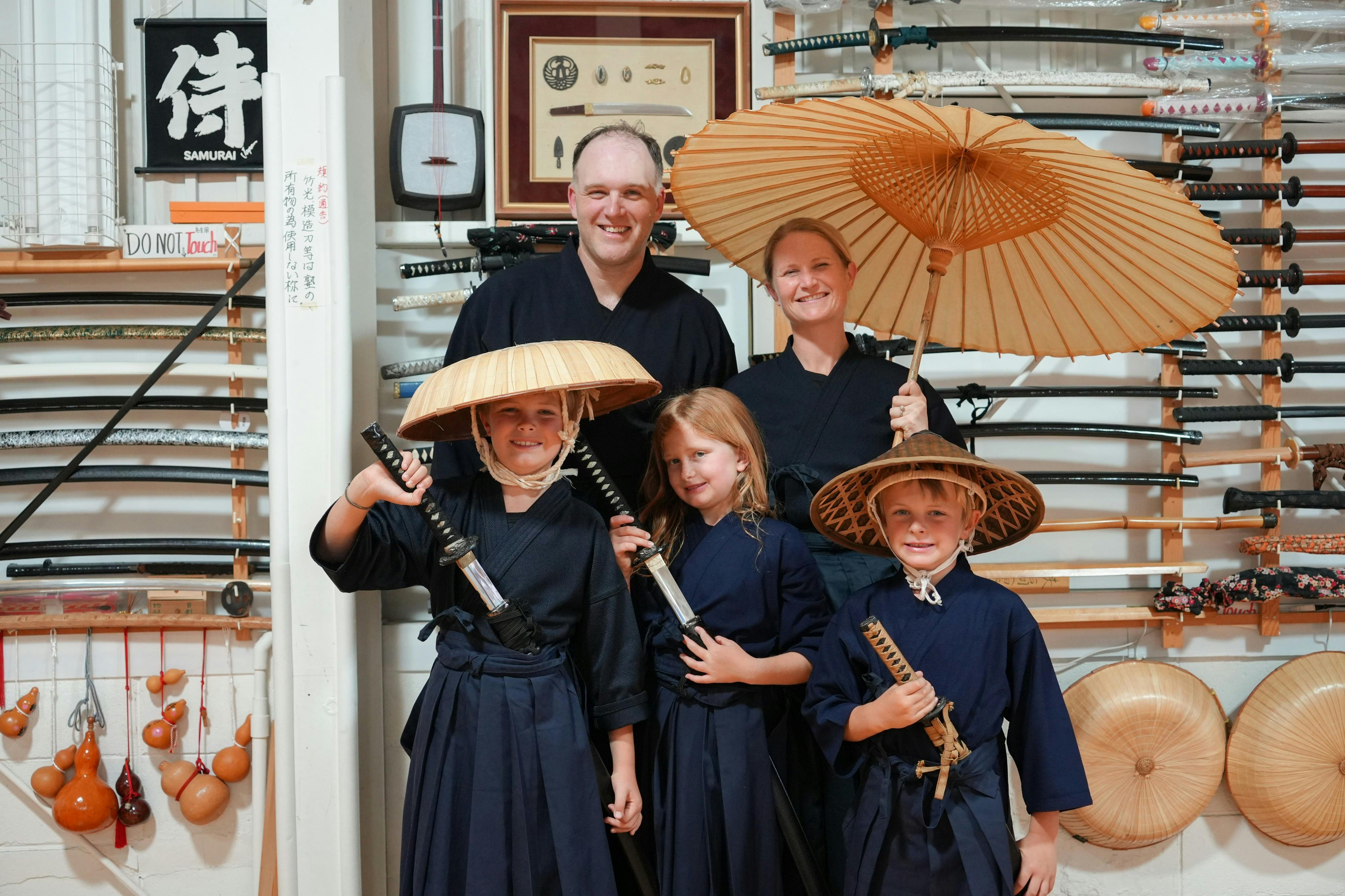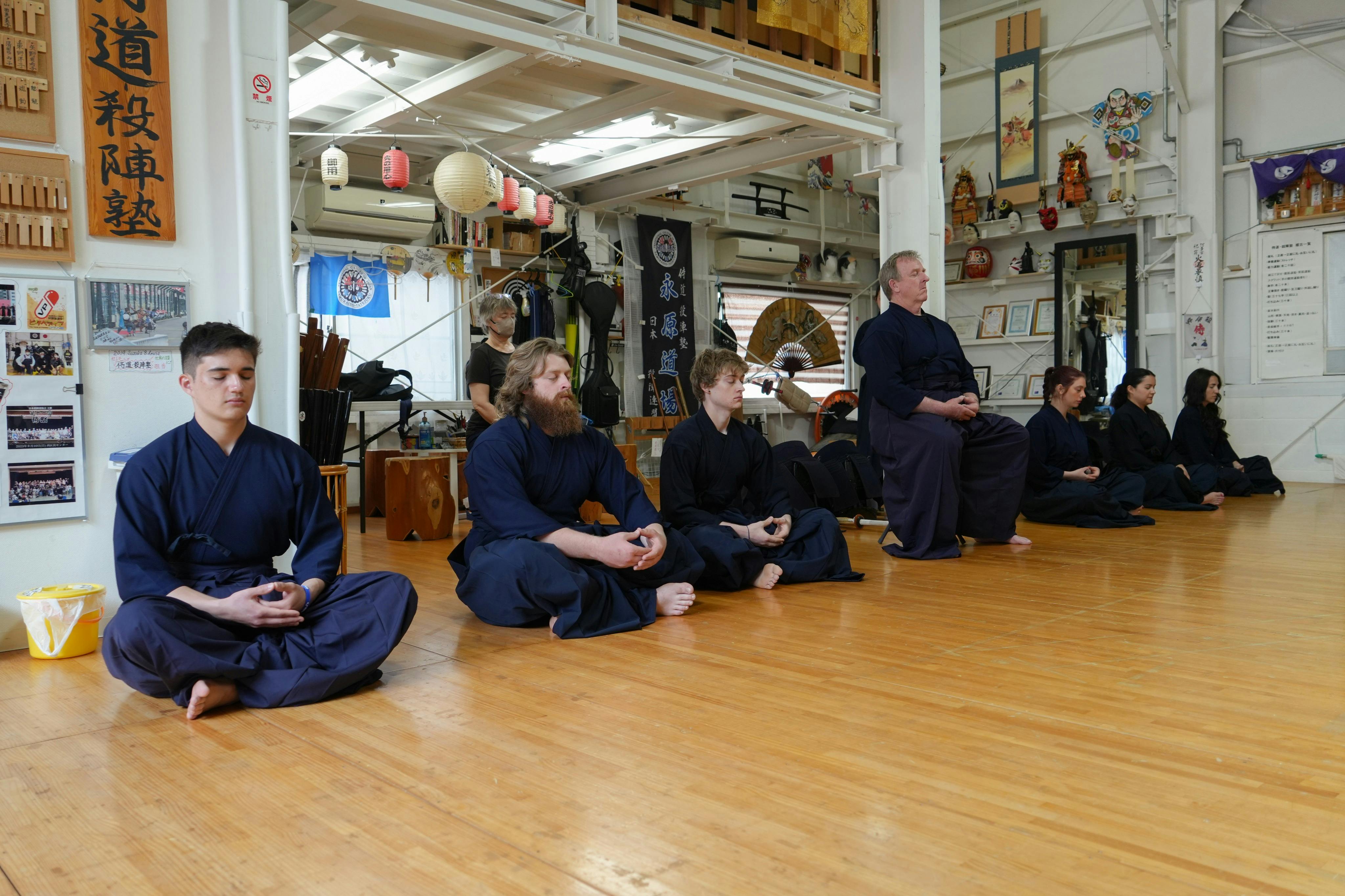 Begin your session by changing into a t-shirt and shorts, then wear a Kendogi and Hakama.