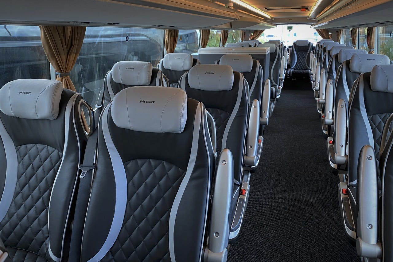 Enjoy easy, luxury travel between Václav Havel Airport and the center of Prague, with drop-off at either Prague Hradčanská Station or Prague Florenc Central Bus Station. Book your ticket early for a comfortable trip. Enjoy air-conditioned buses with leather reclining seats, traveling to and from the airport up to 18 times a day. Free hot drinks, other refreshments, daily newspapers, magazines, and WiFi are all available onboard. Seats have an interactive touchscreen where you can watch movies, listen to music, or play games. There's also an onboard toilet for your convenience.