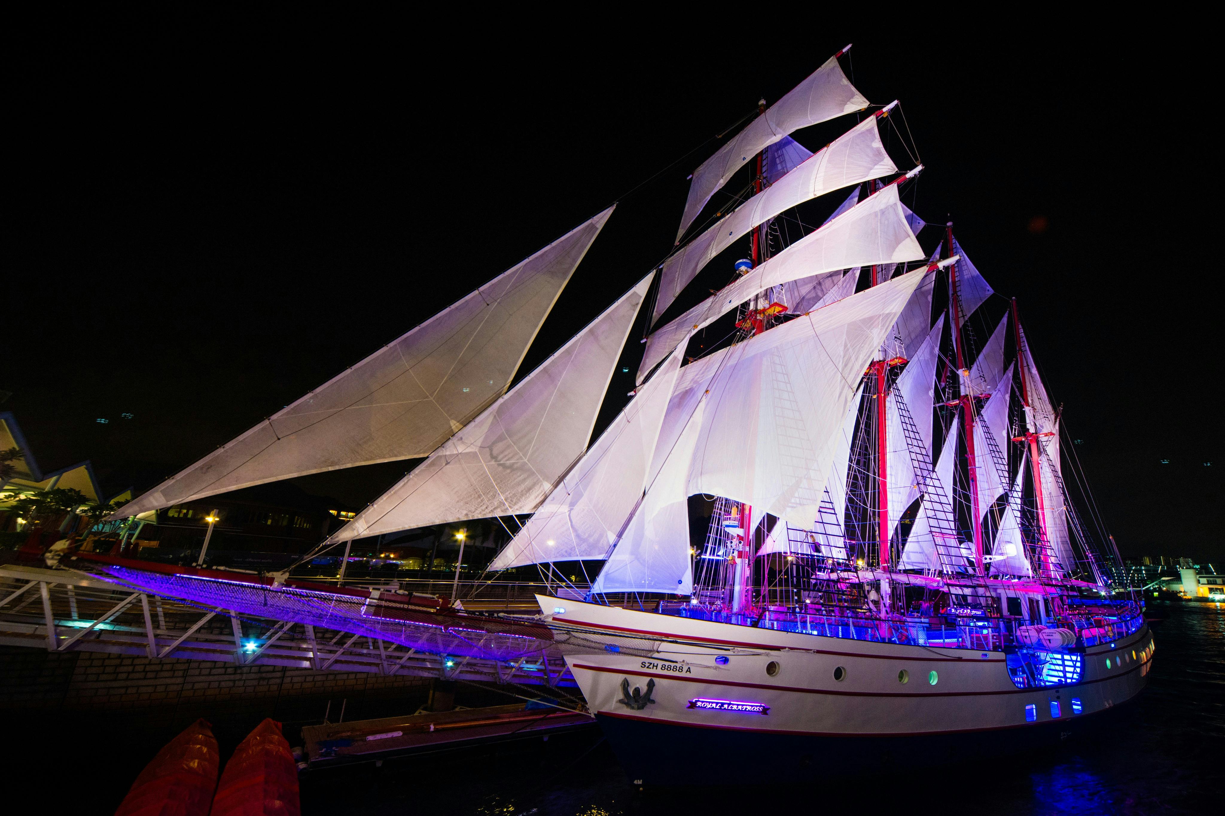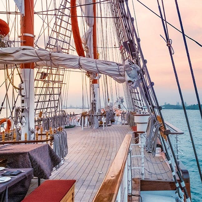 Set sail across Singapore's port aboard the Royal Albatross. This four-masted tall ship, with 22 sails, is ready to take you on a memorable journey.