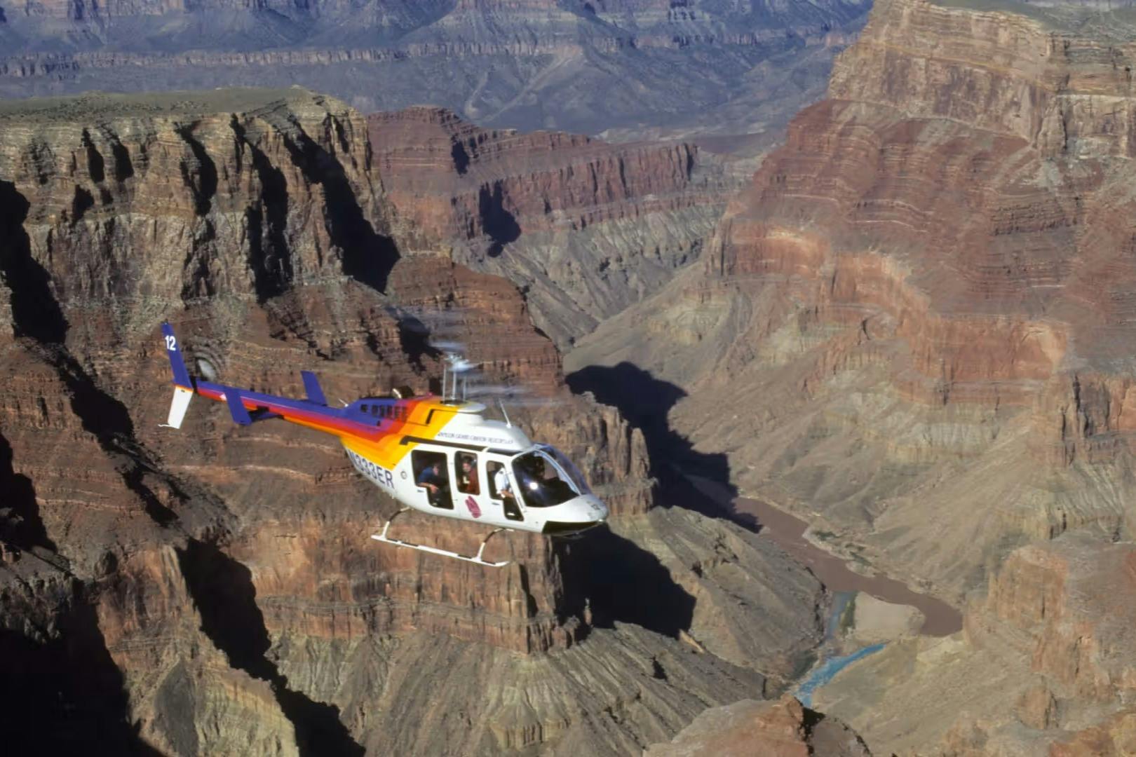 Fly from Boulder City air terminal to the Grand Canyon National Park in just over an hour. Start with a view of the South Rim from the airplane window. At the Grand Canyon, ride in a modified military style open-air Hummer. Make multiple stops at famous lookout points around the park. Your driver will aim for the best viewpoints with minimal traffic so you can spend more time exploring and taking photos. Optionally, add a helicopter tour over the Grand Canyon's northern and southern parts. See the striped canyon walls and the Colorado River below from above. Land back at the airport and continue your Hummer tour.