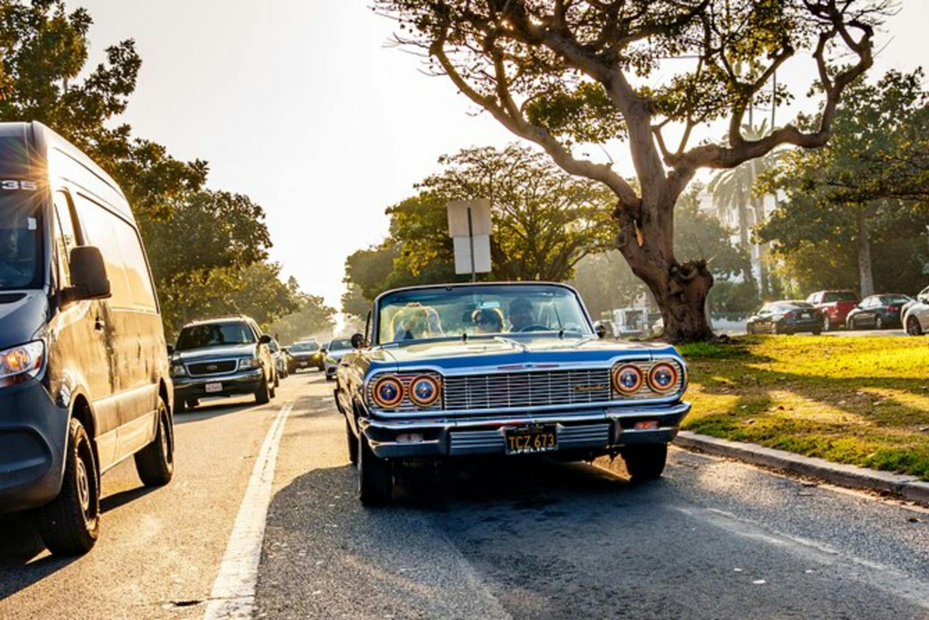 Start your Los Angeles tour in a classic '64 Impala lowrider. Begin at the Beverly Hills sign and climb into this piece of automotive history. Cruise through the streets of Beverly Hills and see the city’s luxurious mansions and landmarks. Stop at spots ideal for capturing photos. Continue toward Hollywood on Sunset Boulevard, passing key locations in LA’s entertainment world. Stop at Hollywood’s Walk of Fame to see the stars and find your favorites. End the tour with views from Mulholland Drive, overlooking the cityscape.