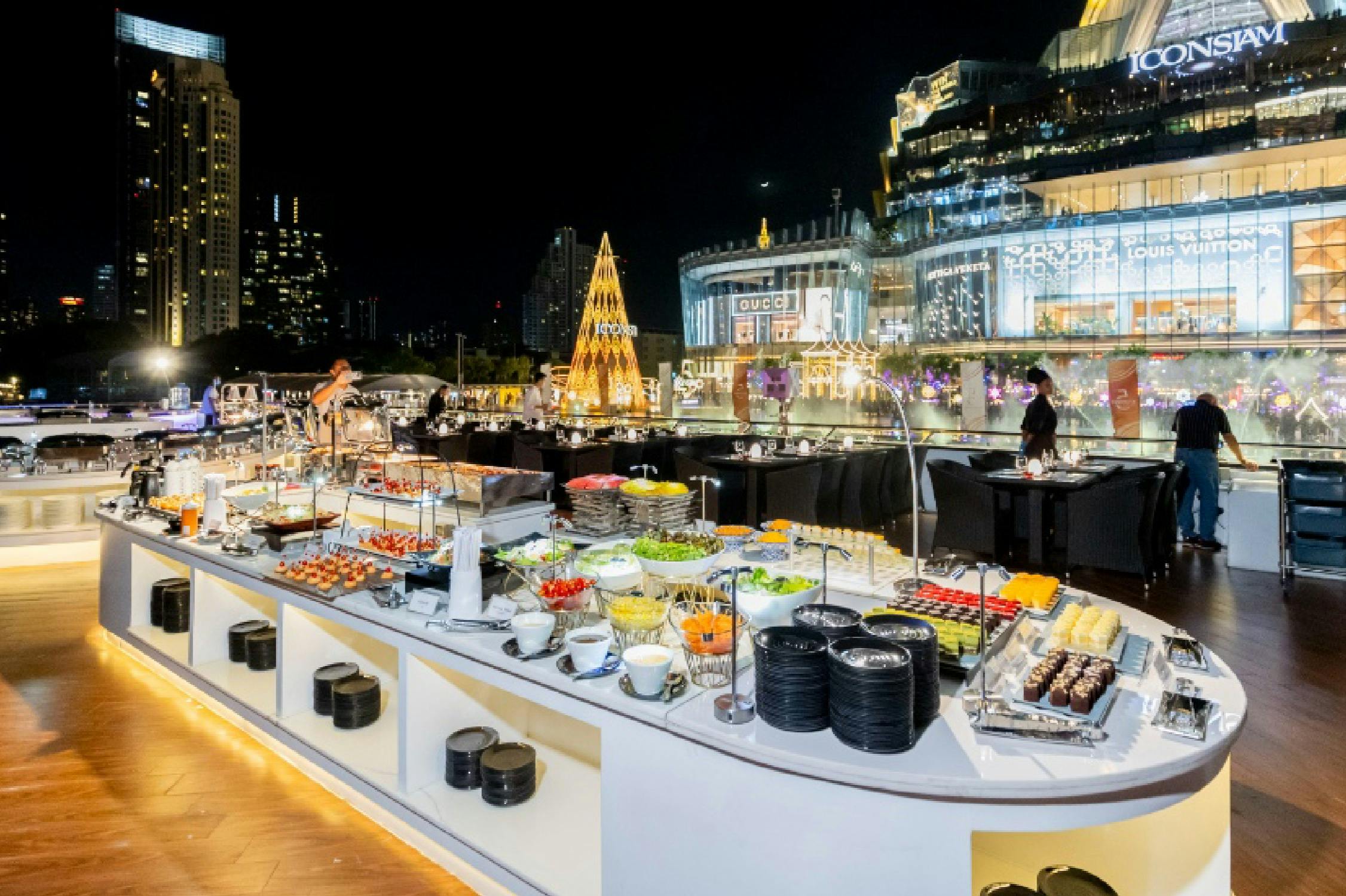 Board the luxury dinner cruise on the Chao Phraya River. Eat from a buffet of international dishes and desserts while viewing Bangkok’s landmarks like the Grand Palace and Wat Arun.