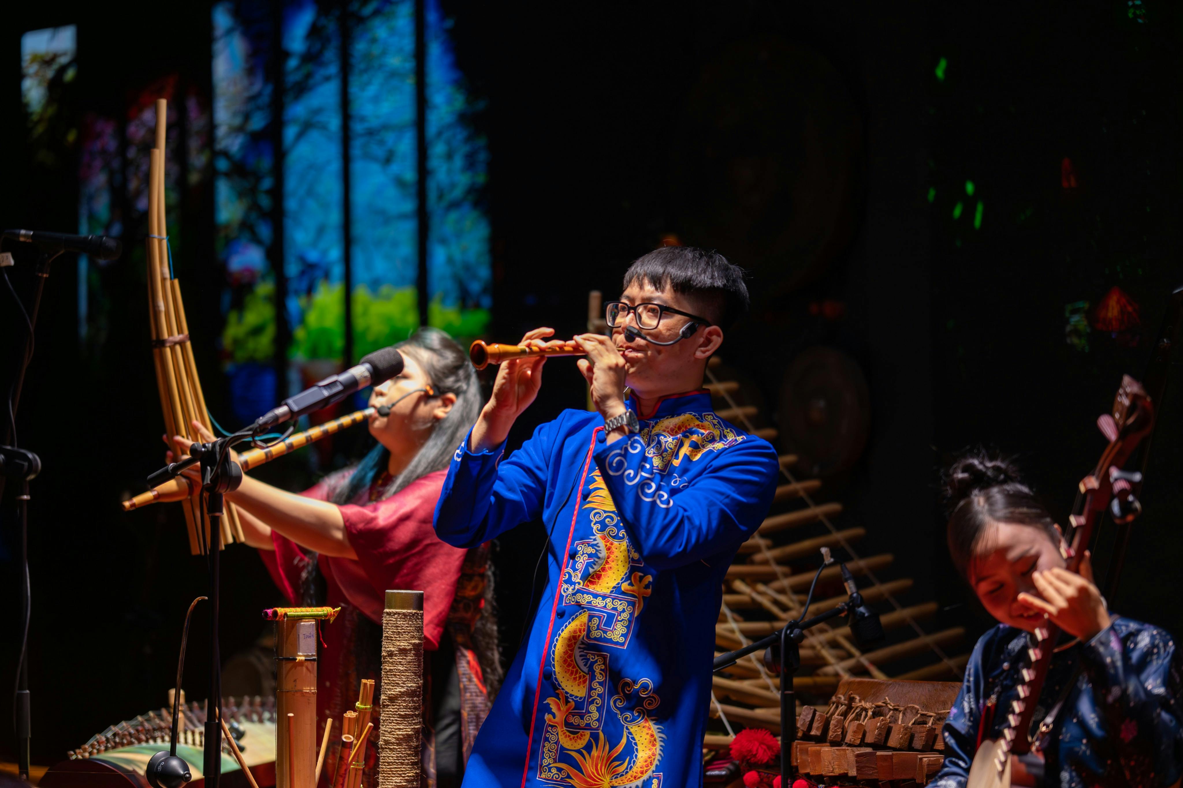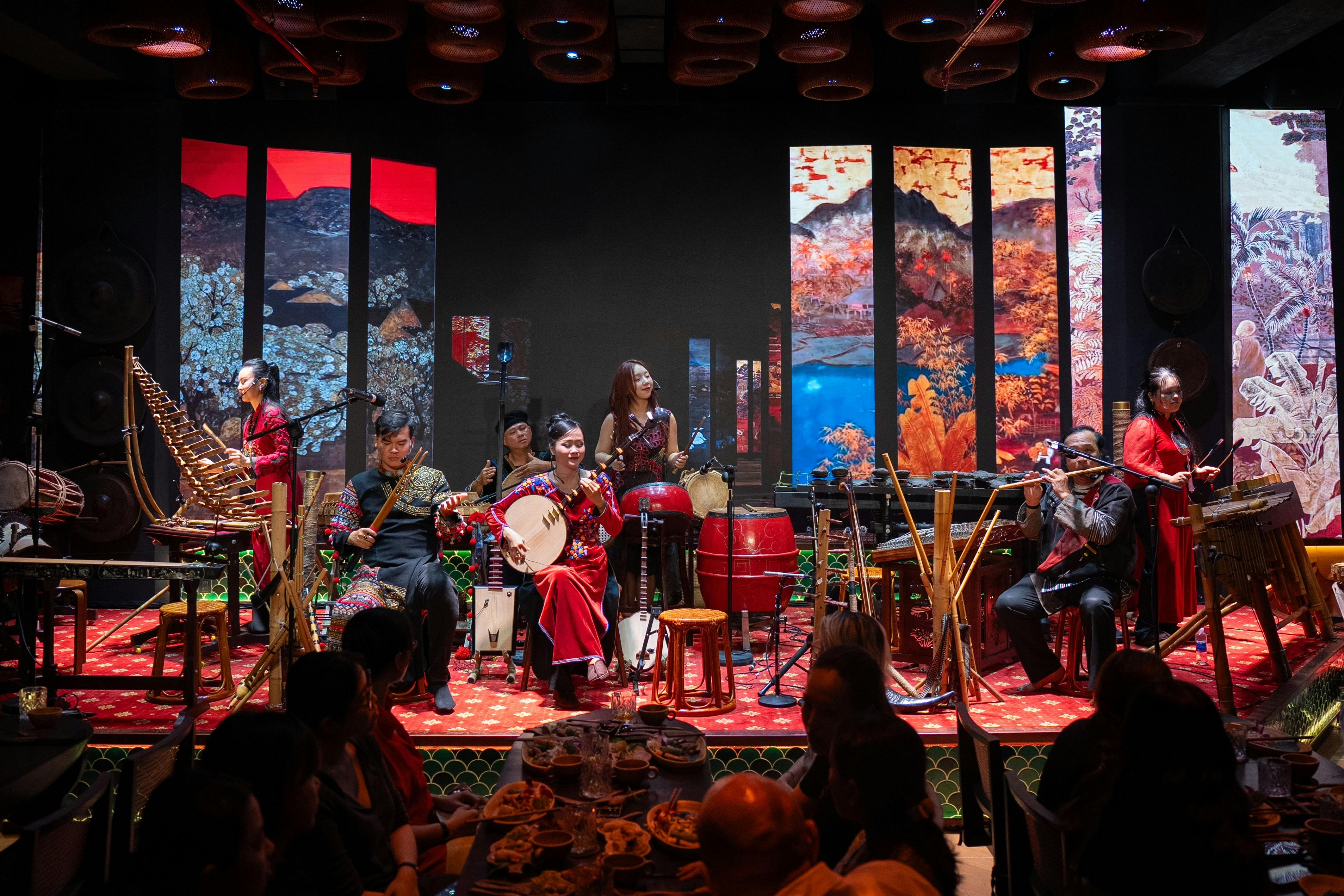 Listen to 12 chapters of Vietnamese folk music played with 30 traditional instruments, composed by the Vietnamese composer Trần Mạnh Hùng.