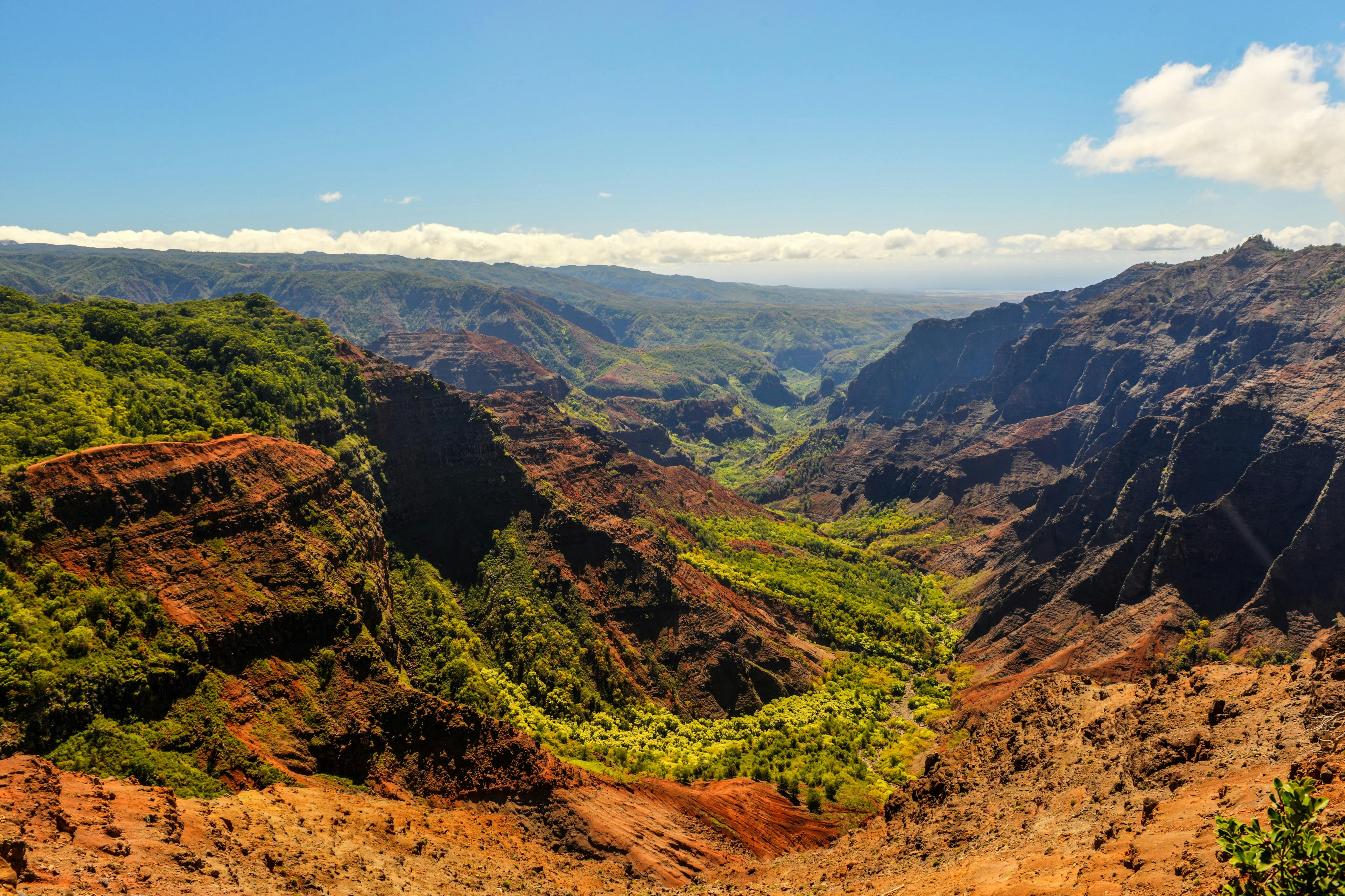 Join a tour of Kauai. Visit Waimea Canyon and see its vastness. See the Waimea Canyon and then continue into Koke'e State Park's rainforests. Look for waterfalls and native wildlife along the way. Guides will share stories about Hawaiian legends and geology. Ride along winding mountain roads and see the sights. Stop at places like Kalalau Valley to see Kauai's scenery.