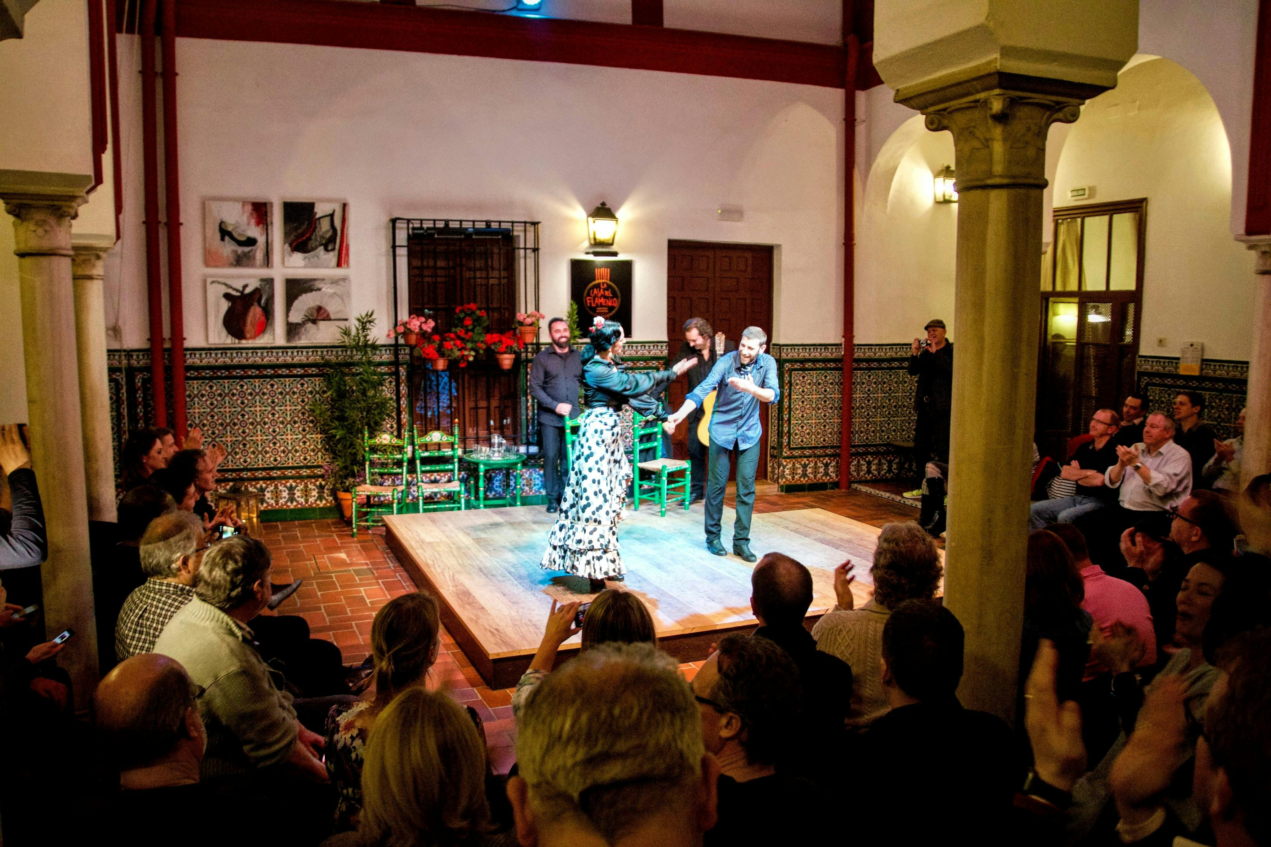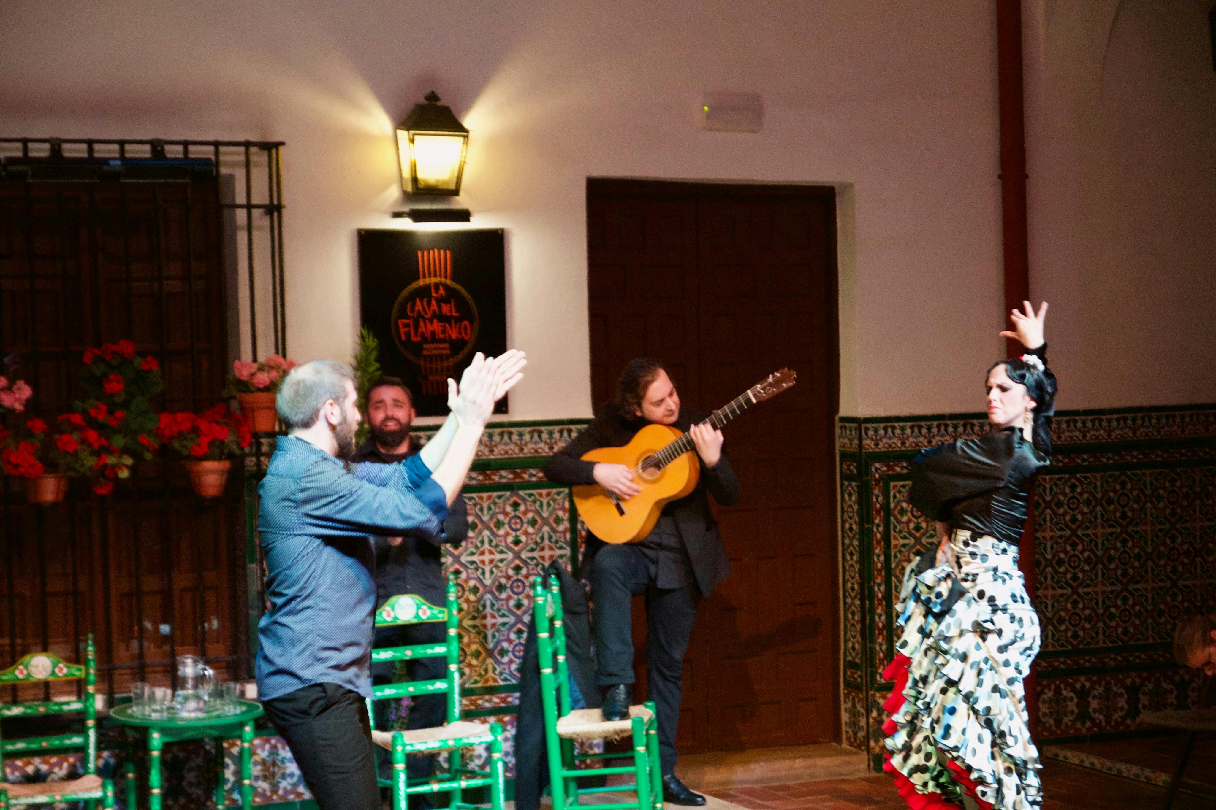 Start your evening at a local tapas bar, where you'll eat a selection of Spanish-cured meats paired with your choice of beer, wine, or sweet vermouth. Get tips from a local expert to enhance your show experience. Next, head to an authentic flamenco venue in Seville's historic center for a passionate live performance. Finish your night at one of Seville's top modern tapas bars, feasting on creative fusion cuisine and discussing the performance over shared plates and great wine.
